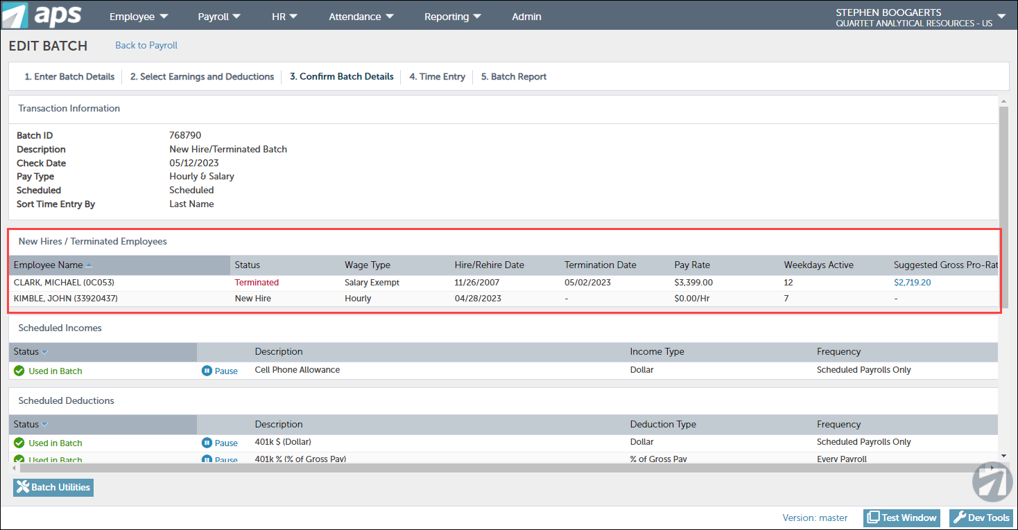 Our system provides payroll admins with a list of new hires and terminated employees in the payroll batch, making it easy to make necessary adjustments for a particular pay period. APS OnLine also includes suggested gross pro-rated dollar amounts for salaried employees, simplifying payroll calculations and ensuring accurate final compensation.