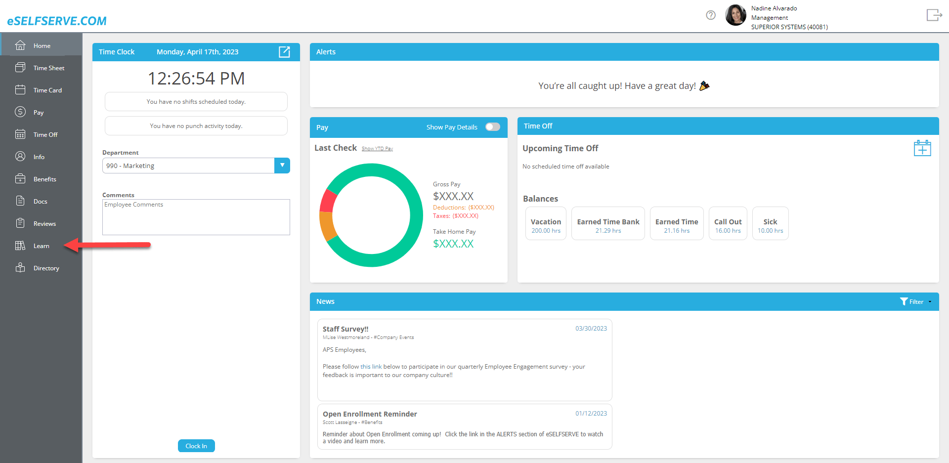 Access your training through Single Sign On (SSO) Integration right from your employee self-service page: